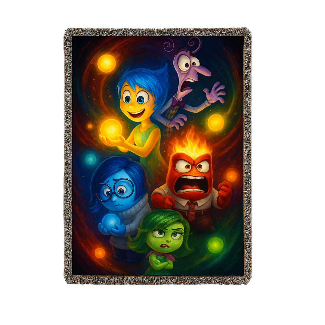 Wrap yourself in the warmth of emotions with blankets inspired by Joy, Sadness, Anger, Fear, and Disgust. Each piece captures the heart of what it means to feel — colorful, nostalgic, and deeply human. Designed to bring comfort, memories, and a touch of Pixar magic to your cozy space. 🌈